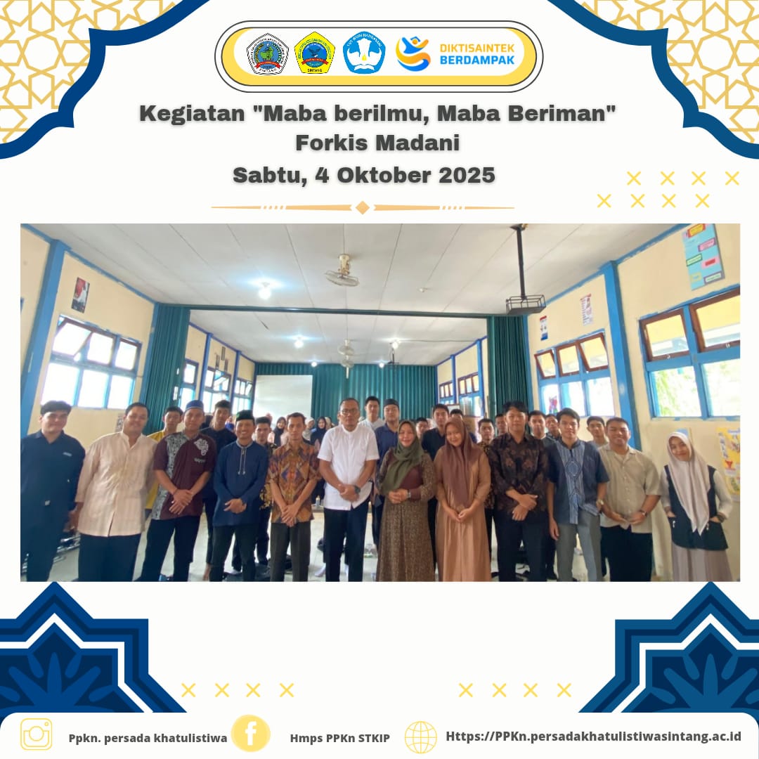 Sabtu, 4 Oktober 2025 Forkis Madani STKIP Persada Khatulistiwa melaksanakan kegiatan “Maba Berilmu, Maba Beriman” yang bertempat di Gedung C101.