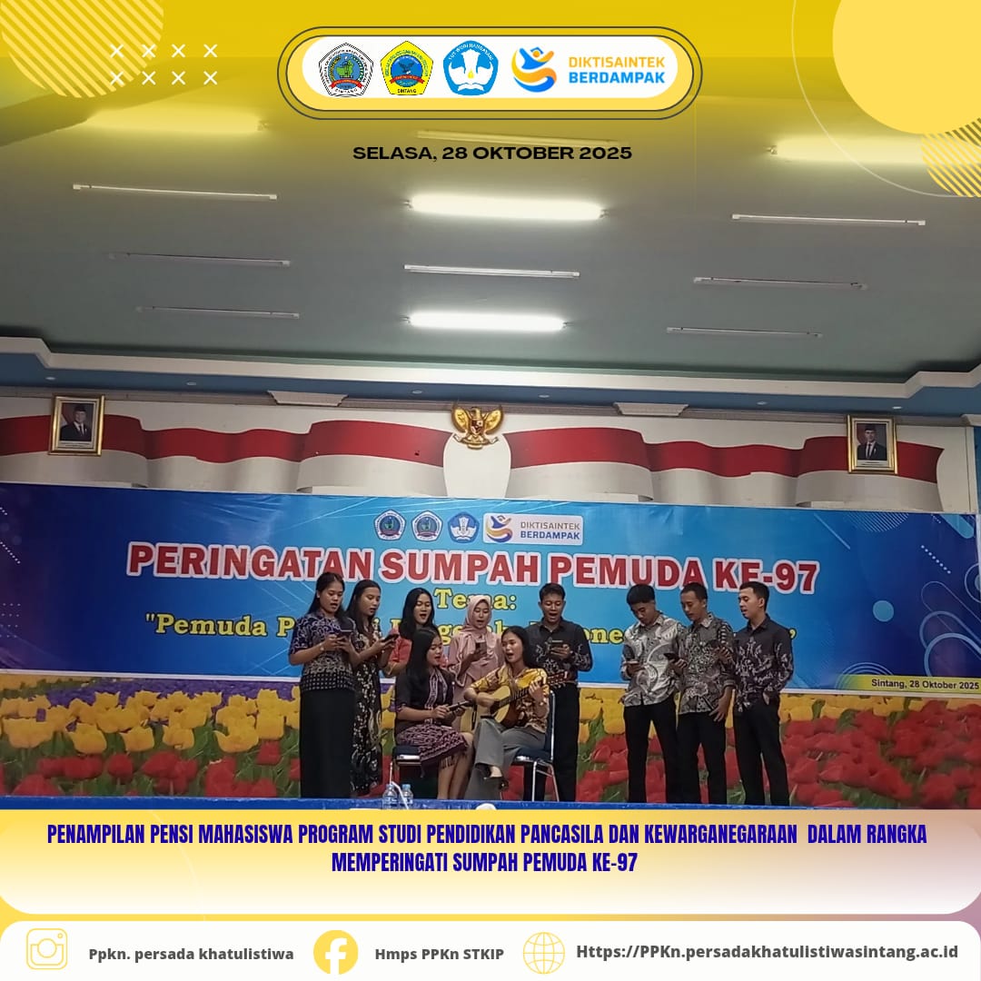 Pada Hari Selasa, 28 Oktober 2025 Dalam rangka memeriahkan acara pentas seni, mahasiswa Program Studi Pendidikan Pancasila dan Kewarganegaraan menampilkan persembahan istimewa berupa dua lagu penuh makna dan semangat kebangsaan.