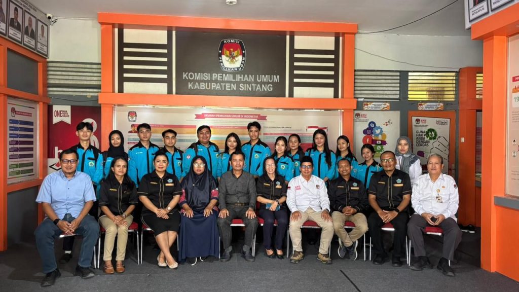 Selanjutnya, rombongan melanjutkan kegiatan penyerahan ke Kantor KPU Kabupaten Sintang, di mana mahasiswa diterima langsung oleh Ketua KPU Kabupaten Sintang, Bapak Edy Susanto, S.E., M.I.P., beserta jajaran komisioner. Dalam suasana penuh keakraban, dilakukan pula penandatanganan berita acara serah terima mahasiswa magang dan penyerahan dokumen resmi oleh Ibu Fusnika, M.Pd.